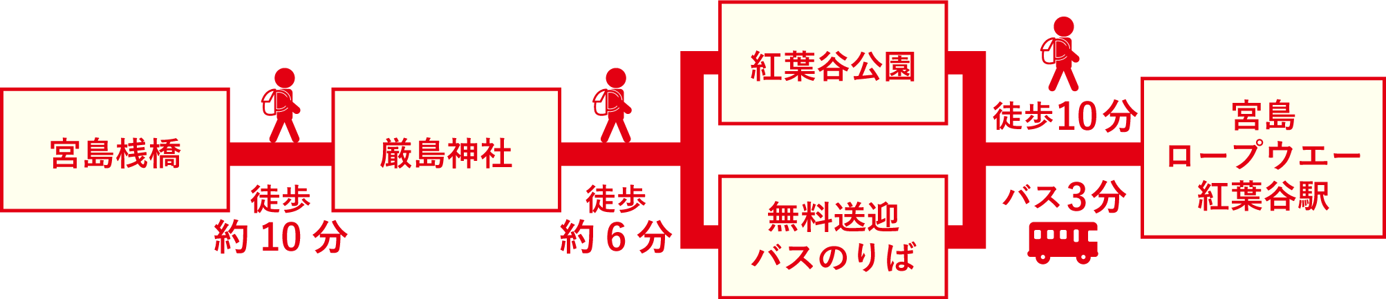 宮島桟橋から タクシーで約6分(紅葉谷駅まで)